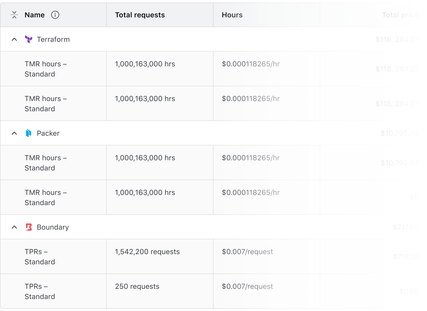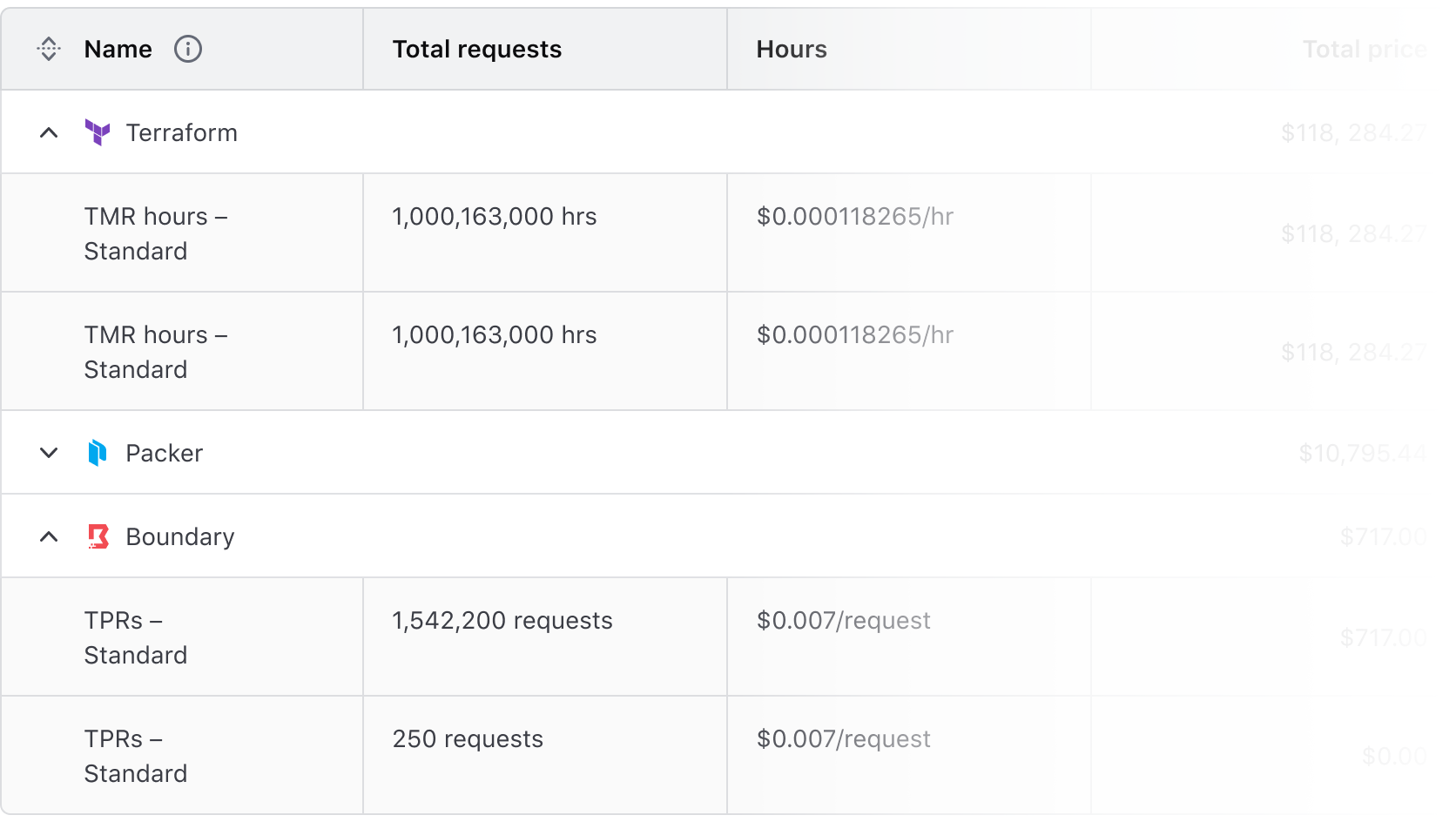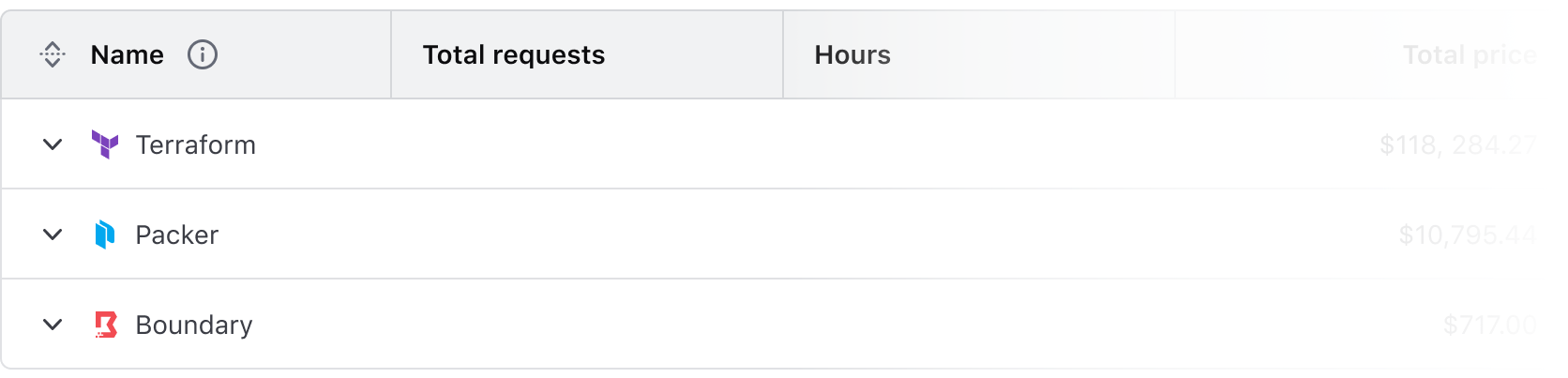Expandable rows let users show or hide more content without navigating away from the table. The expanded content should align with the header labels, even if the parent row includes minimal data.